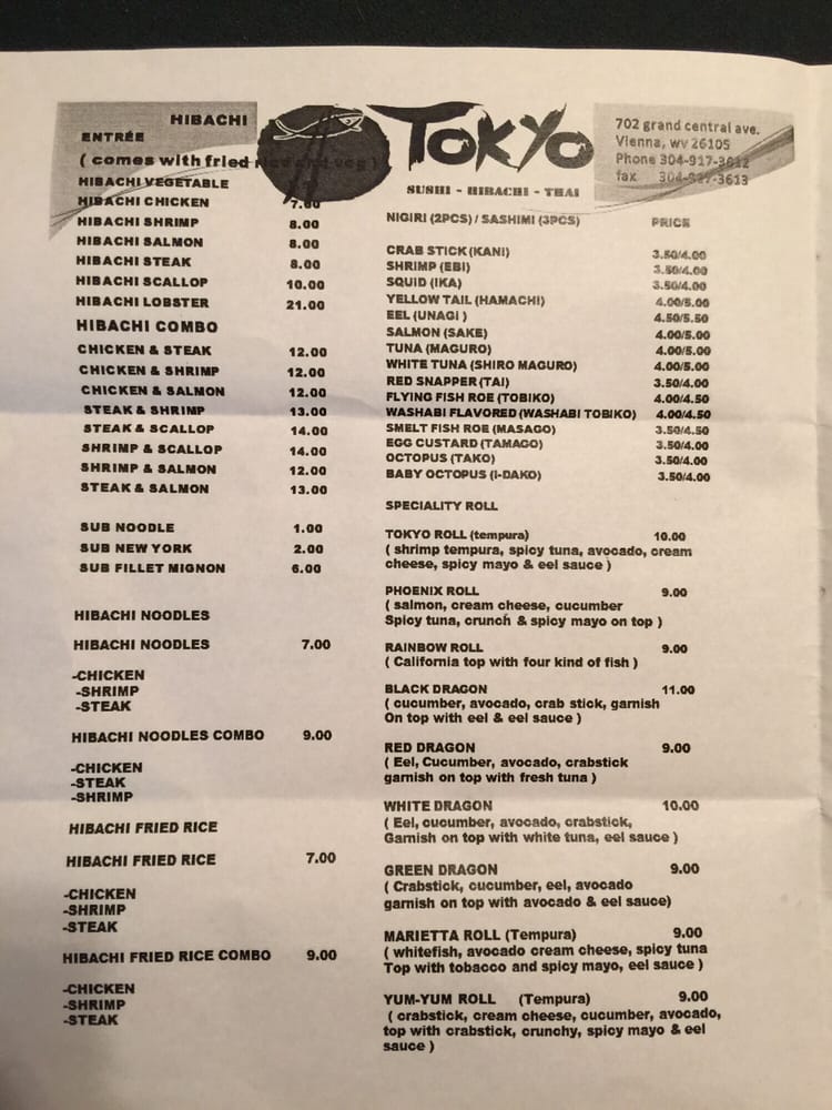 Tokyo Thai Sushi Hibachi is a top-tier Thai and sushi bar in Vienna, WV that offers a wide range of dining options. From vegan and vegetarian dishes to traditional hibachi grills, this restaurant has something for everyone. The casual and trendy atmosphere is perfect for groups and families, with options for both lunch and dinner. The menu features a variety of fresh and flavorful dishes, with the option for takeout, delivery, or catering services. With excellent waiter service, private parking, and outdoor seating, Tokyo Thai Sushi Hibachi ensures a memorable dining experience. Don't forget to try their signature dishes and enjoy a relaxing meal with friends and family.